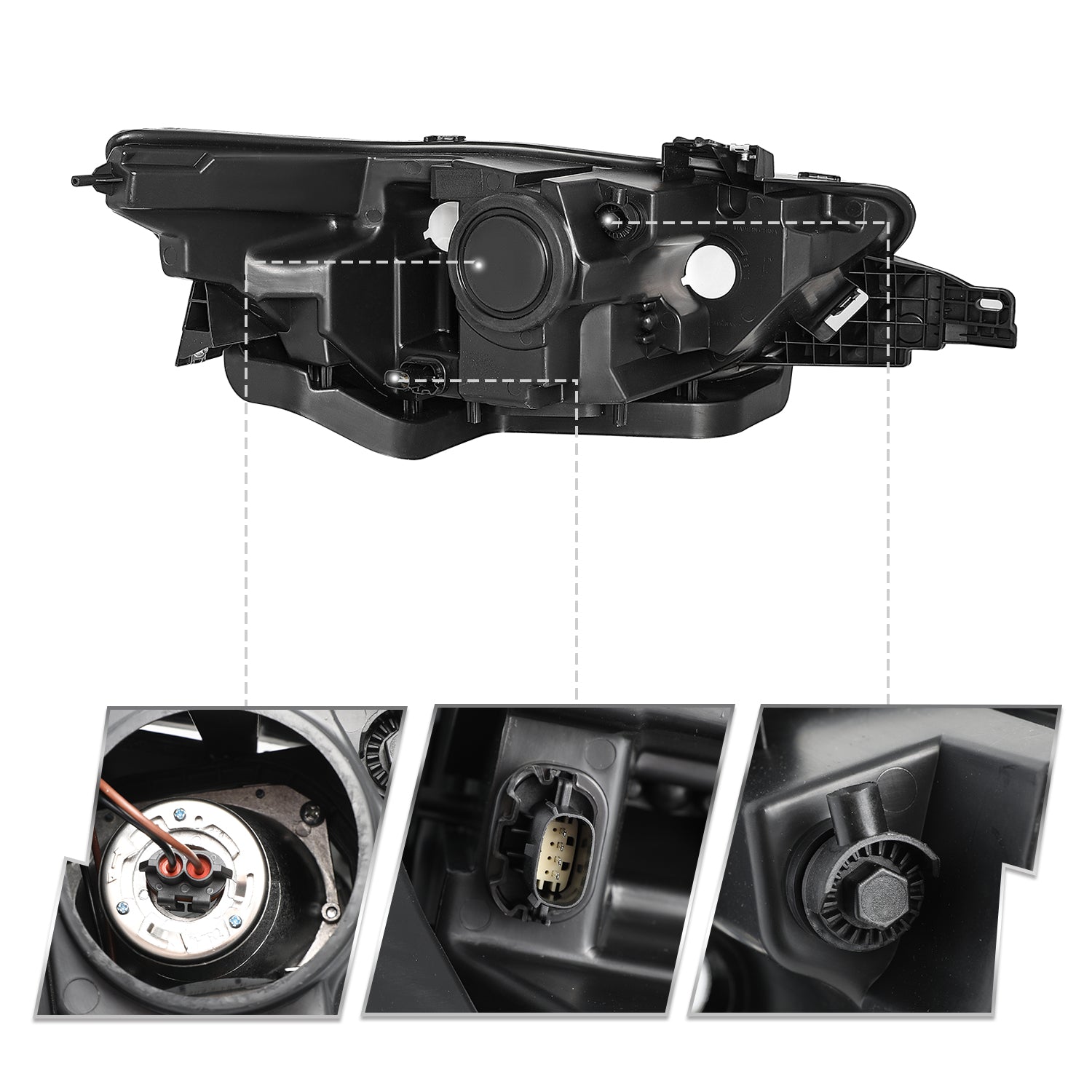 2. Detach the original headlight housing and replace it with your new one.